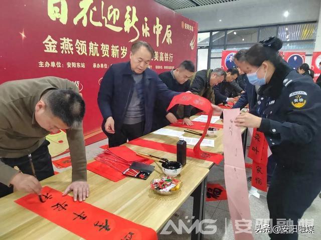 1月22日正值农历小年,高铁安阳东站候车区异常热闹,市文学艺术界联合会和安阳高铁东站联合开展的“百花迎新乐中原”为全国旅客送春联活动正在开展。
